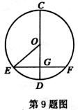 9.如图,⊙O的直径CD过弦EF的中点G,∠EOD=40°,则∠DCF的度数为: