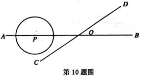 10.如图,直线AB、CD相交于点O,∠AOC=30°,半径为1cm的⊙P的圆心在射线OA上,且与点O的距离为6cm,如果⊙P以1cm/s的速度沿由A向B的方向移动,那么几秒后⊙P与直线CD相切: