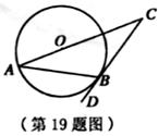 19.如图,CD切⊙O于点B,CO的延长线交⊙O于A,若∠C=36°,则∠ABD的度数是______.