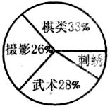 11.如图,某中学制作了200名学生选择武术、棋类、摄影、刺绣四门校内课程情况的扇形统计图.从图中可以看出选择刺绣的学生人数为( )人.