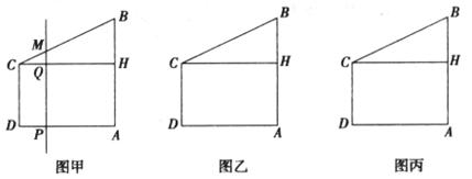24.如下图甲,直角梯形ABCD中,AB∥CD,∠A=90°,CD=3,AD=4,tan∠B=2,过点C作CH⊥AB,垂足为H。点P为线段AD上一动点,直线PM∥AB,交BC、CH于点M、Q。以PM为斜边向右作等腰Rt△PMN,直线MN交直线AB于点E,直线PN交直线AB于点F。设PD的长为