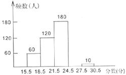 (4)若成绩在24分以上的考生成绩为“优秀”,请估计今年全市初中毕业生的体育升学考试成绩为“优秀”的人数。