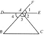 D.∵∠4=∠1,∴DE∥BC(对顶角相等)