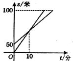 7.一天,小军和爸爸去登山,已知山脚到山顶的路程为100米。小军先走了一段路程,爸爸才开始出发。下图中两条线段分别表示小军和爸爸离开山脚登山的路程S(米)与登山所用的时间t(分)的关系(从爸爸开始登山时计时)。则下列说法错误的是