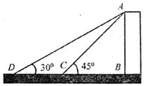 4.如下图,在高楼前D点测得楼顶的仰角为30°,向高楼前进60米到C点,又测得仰角为45°,则该高楼的高度大约是