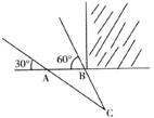 某地震救援队探测出某建筑物废墟下方点C处有生命迹象,已知废墟一侧地面上两探测点A,B相距3米,探测线与地面的夹角分别是30°和60°(如下图),试确定生命所在点C的深度,点C到点A的水平距离。(结果精确到0.1米,参考数据