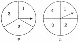 21.同时转动如下图所示的甲、乙两个转盘,求两个转盘所转到的两个数字之和为奇数的概率。(用树状图或列表法求解)(5分)