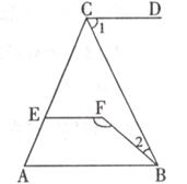 30.如下图,△ABC中,∠A=62°,作CD∥AB,点E在AC上,点F在△ABC内,且∠FEC=62°,连接BF。请你探索∠1、∠2、∠F三个角之间的关系,并给出证明。