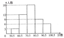 31.某校为了了解初三年级数学学习成绩,对初三(一)班学生进行了数学调研测试,数学老师将测试成绩进行了统计,绘制成如下图(得分取整数)所示的频数分布直方图。请根据图中所给信息解答下列问题: