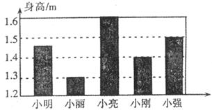 32.小亮根据5名同学的身高绘制了如下图所示的统计图。