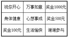 某电视台的娱乐节目《周末大放进》有这样的翻奖牌,数字的背面写有祝福语或奖金数,游戏规则是:每次翻动正面一个数字,看看反面对应的内容,就可知得奖还是得到温馨祝福。