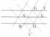 5.同学们曾玩过万花筒,它是有三块等宽等长的玻璃片围成的。如图所示是看到的万花筒的一个图案,图所有小三角形均是全等的等边三角形,其中的菱形AEFG可把菱形ABCD以A为中心 ( )