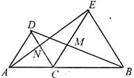 20.如图,△ACD、△BCE都是等边三角形,△NCE经过旋转后能与△MCB重合.请到答:
