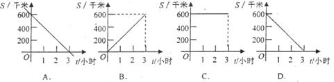 12.2007年我国铁路进行了第六次大提速,一列火车由甲市匀速驶往相距600千米的乙市,火车的速度是200千米/时,火车离乙市的距离S(单位:千米)随行驶时t(单位:小时)变化的函数关系用图象表示正确的是