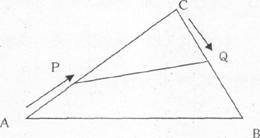 ABC中,∠C=900 ,AC=20cm,BC=1 5 cm.现有动点P从A出发,沿AC方向运动:动点Q从C出发,沿CB方向运动.如果点P的速度是4