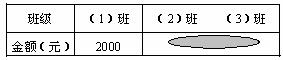 吴老师统计时不小心把墨水滴到了其中两个班级的捐款金额上,但他知道下面三条信息: