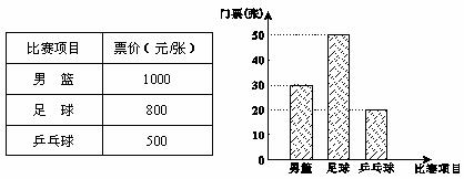 5.下表为抄录北京奥运会官方票务网公布的三种球类比赛的部分门票价格,某公司购买的门票种类、数量绘制的条形统计图如下图.