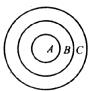 19.在一次晚会上,大家围着飞镖游戏前,看见靶子设计成下图形式,已知从里到外的三个圆的半径分别为l,2,3并且形成A,B,C三个区域.如果飞镖没有停落在最大圆内或只停落在圆周上,那么可以重新投镖.(本题满分8分)