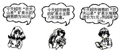 3.2008年“国庆节”节,小华,小颖,小明相约到“心连心”超市调查“农夫山泉”矿泉水的日销售情况。下图是调查后三位同学进行交流的情景。