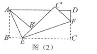 19.把一个长方形ABCD的一角折起来,使点B落在点B’处,折痕为AE(如图(1)所示).再将另一角折起,使点C落在点C’处,并且点E、B’、C’在同一条直线上,折痕为EF(如图(2)所示).