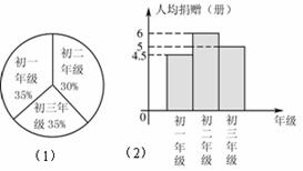 (3)随机抽查的200名学生中初三年级学生共捐赠图书多少册?