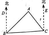如下图,点A在点B处的北偏东40°方向,点C在点B处的北偏东85°方向,点A在点C处的北偏西45°方向,求∠BAC,∠BCA的度数。