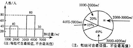 检测学生肺活量是学生体查的一项重要指标。为了了解某学校2009年1500名初二学生的肺活量,并将调查的数据绘成直方图和扇形图。