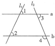 相交,若∠1=∠2,∠3=60°,则∠4=_________。