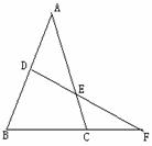 21.(9分)如下图,直线DE交△ABC的边AB、AC于D、E,交BC的延长线于点F,若∠B=67°,∠ACB=74°,∠AED=48°,求∠BDF的度数。