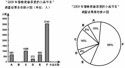 20.在我国,除夕之夜,全家一起看春节联欢晚会是人们传统的娱乐活动,尤其是小品类节目为我们带来了很多的欢乐。为了统计观众对2009年春晚小品类节目的喜好,中央电视台在网上进行了“2009年春晚我最喜爱的小品”调查问卷,并将统计结果绘制成两幅统计图,请你结合图中所给信息解答下列问题:
