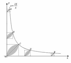 (x>0)图象上五个整数点(横、纵坐标均为整数),分别以这些点向横轴或纵轴作垂线段,由垂线段所在的正方形边长为半径作四分之一圆周的两条弧,组成如图所示的五个橄榄形(阴影部分),则这五个橄榄形的面积总和是 (用含π的代数式表示)