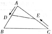 10.如下图,在钝角△ABC中,AB=6cm,AC=12cm,动点D从点A出发到点B止,动点E从点C出发到点A止,点D运动的速度为1cm/s,点E运动的速度为2cm/s。如果两点同时运动,那么当以点A、D、E为顶点的三角形与△ABC相似时,运动的时间是
