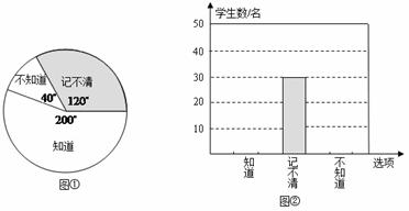 23.(本题满分7分)今年兰州市在全市中小学中开展以感恩和生命为主题的教育活动,各中小学结合学生实际,开展了形式多样的感恩教育活动.下面图①,图②分别是某校调查部分学生是否知道母亲生日情况的扇形统计图和条形统计图.根据图上信息,解答下列问题: