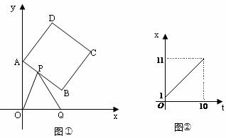 (长度单位)关于运动时间t(秒)的函数图象如图②所示,请写出点Q开始运动时的坐标及点P运动速度;