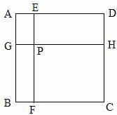 如图,边长为1的正方形ABCD被两条与边平行的线段EF、GH分割为四个小矩形,EF与GH交于点P。