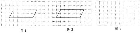 (2)把图2中的平行四边形分割成四个全等的四边形(要求在图2中画出分割线),并把所得的四个全等的四边形在图3中拼成一个轴对称图形或中心对称图形,使所得图形与原图形不全等且各个顶点都落在格点上。