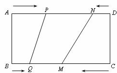 如图,在矩形ABCD中,BC=20cm,P,Q,M,N分别从A,B,C,D出发沿AD,BC,CB,DA方向在矩形的边上同时运动,当有一个点先到达所在运动边的另一个端点时,运动即停止.已知在相同时间内,若BQ=xcm(