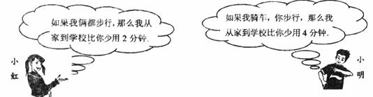 23.已知小明骑车和步行的速度分别为240米∕分、80米∕分,小红每次从家步行到学校所需时间相同。请你根据小红和小明的对话内容(如下图),求小明从家到学校的路程和小红从家步行到学校所需的时间。