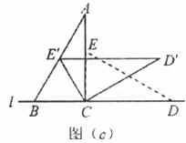 (3)将△ECD绕点C逆时针方向旋转到上图(c)的位置,使E点落在AB上。请求出旋转角的度数。