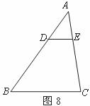 23.如图8,在△ABC中,已知DE∥BC,AD=4,DB=8,DE=3,