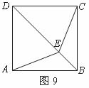 24. 如图9,E是正方形ABCD对角线BD上的一点,求证:AE=CE.