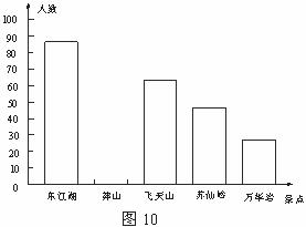 26.郴州市一座美丽的旅游城市,吸引了很多的外地游客,某旅行社对5月份本社接待的外地游客来郴州旅游的首选景点作了一次抽样调查。调查结果如下图表:(如图10)