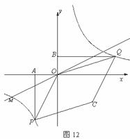 (3)如图12,当点Q在第一象限中的双曲线上运动时,作以OP、OQ为邻边的平行四边形OPCQ,求平行四边形OPCQ周长的最小值.