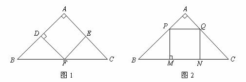 24.(本题10分)如图,等腰直角△ABC腰长为a,现分别按图1、图2方式在△ABC内内接一个正方形ADFE和正方形PMNQ.设△ABC的面积为S,正方形ADFE的面积为S1,正方形PMNQ的面积为S2,