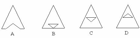 4.将一张等边三角形纸片按图①所示的方式对折,再按图②所示的虚线剪去一个小三角形,将余下纸片展开得到的图案是 ( )