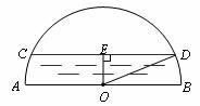 下图是一个半圆形桥洞截面示意图,圆心为O,直径AB是河底线,弦CD是水位线,CD∥AB,且CD = 24 m,OE⊥CD于点E.已测得sin∠DOE = ![]()