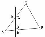 7、如图,△ABC中,∠A=500,点D.E分别在AB、AC上,则∠1+∠2的大小为( )