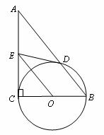 如图,在Rt△ABC中,∠C=90°,以BC为直径作⊙O交AB于点D,取AC的中点E,连结DE、OE.