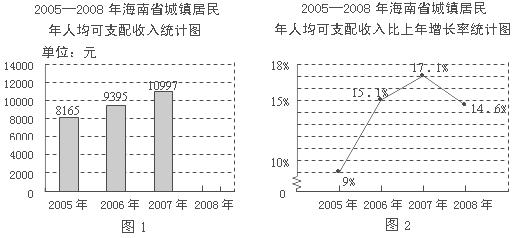 (3)根据图1指出:2005-2008年海南省城镇居民人均可支配收入逐年