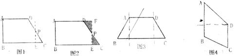 小明在操作后发现,该剪拼方法就是先将△PEC绕点P逆时针旋转180°到△PFD的位置,易知PE与PF在同一条直线上。又因为在梯形ABCD中,AD∥BC,∠C+∠ADP=180°,则∠FDP+∠ADP=180°,所以AD和DF在同一条直线上。那么构成的新图形是一个四边形,进而根据平行四边形的判定方法,可以判断出四边形ABEF是一个平行四边形,而且还是一个特殊的平行四边形--矩形.
